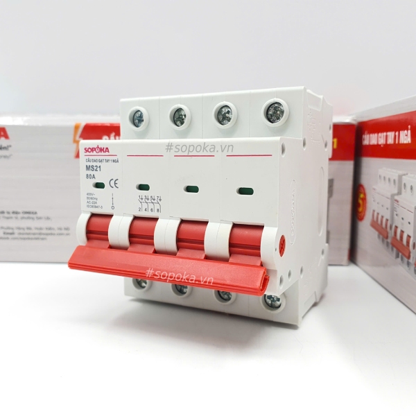 Cầu Dao Gạt Tay 1 Ngã 4P MS21 Dòng 15A - 80A SOPOKA