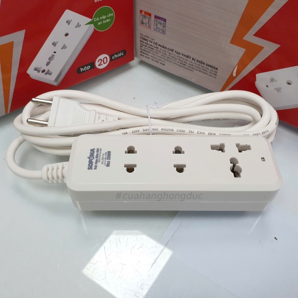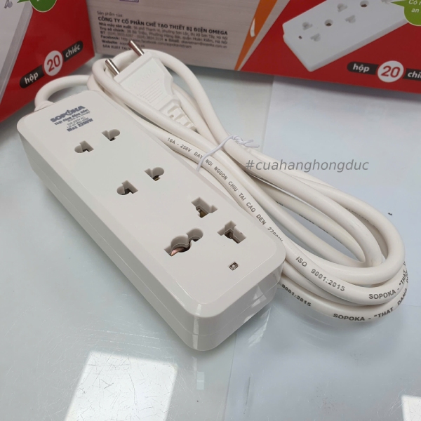 Ổ Cắm Điện 3 Lỗ 2200W Lõi Sứ Có Dây 3C2 SOPOKA