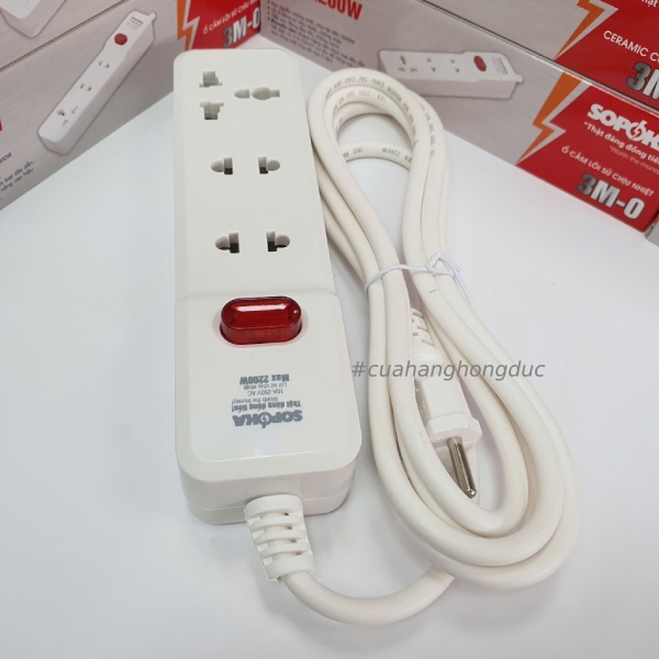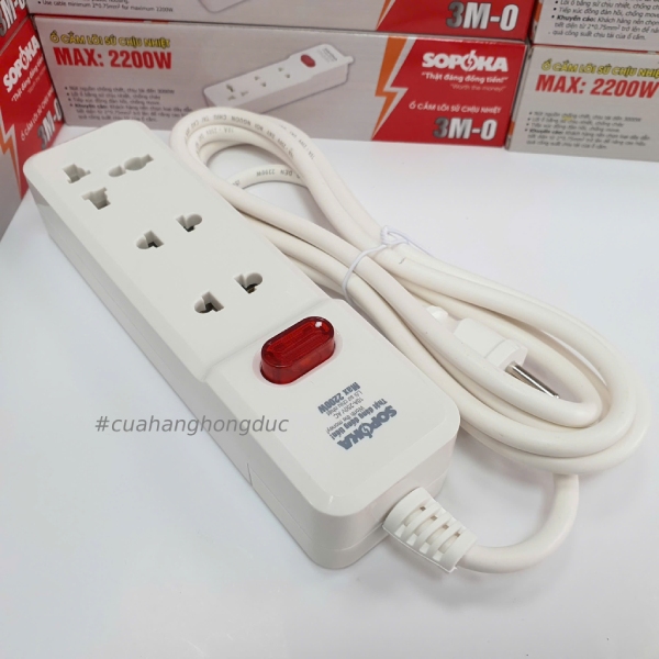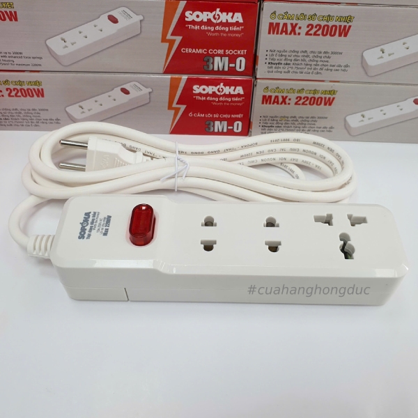 Ổ Cắm Điện 3 Lỗ 2200W Lõi Sứ Có Dây Công Tắc 3M2 SOPOKA