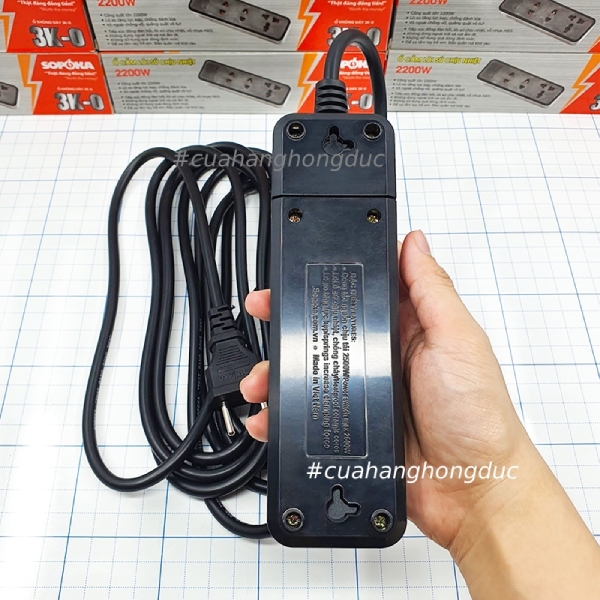 Ổ Cắm Điện 3 Lỗ 2200W Lõi Sứ Màu Đen 3K SOPOKA