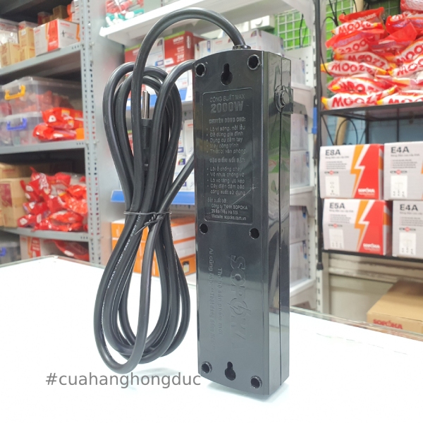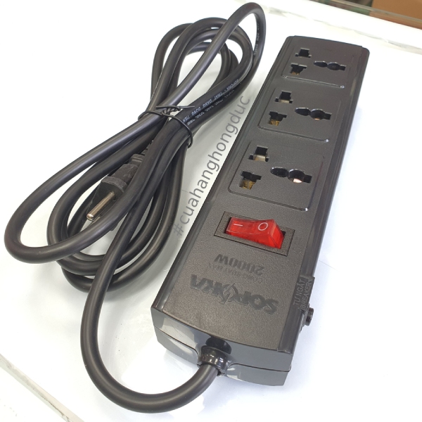 Ổ Cắm Điện 3 Lỗ 3 Chấu 2200W Lõi Sứ Breaker Tự Ngắt Điện Quá Tải 3T SOPOKA