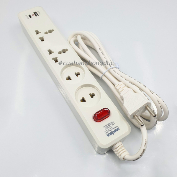 Ổ Cắm Điện 4 Lỗ USB Sạc Nhanh Type-C Lõi Sứ 2200W 4C2 SOPOKA