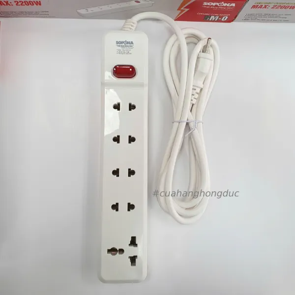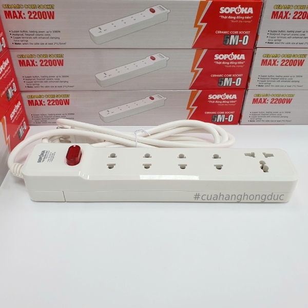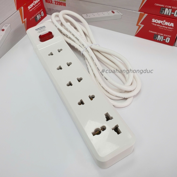 Ổ Cắm Điện 5 Lỗ 2200W Lõi Sứ Có Dây Công Tắc 5M2 SOPOKA