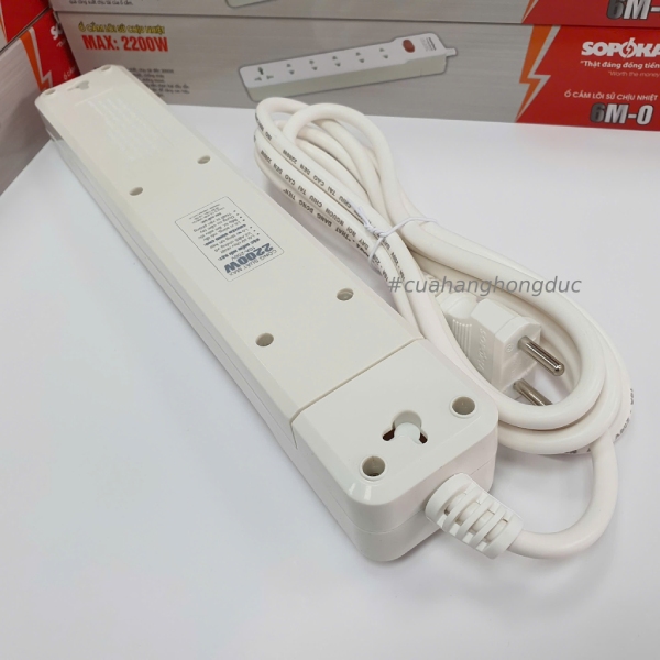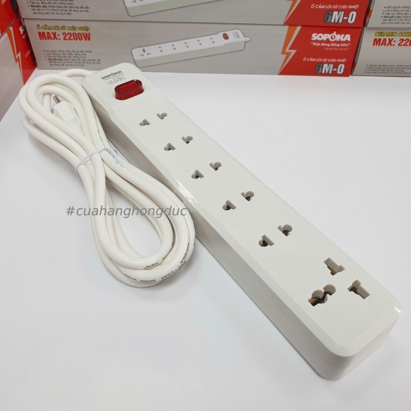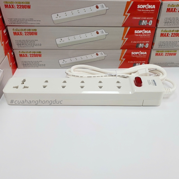 Mua Ổ cắm điện 6 lỗ 2200W lõi sứ có dây và công tắc 6M2 SOPOKA tại:
