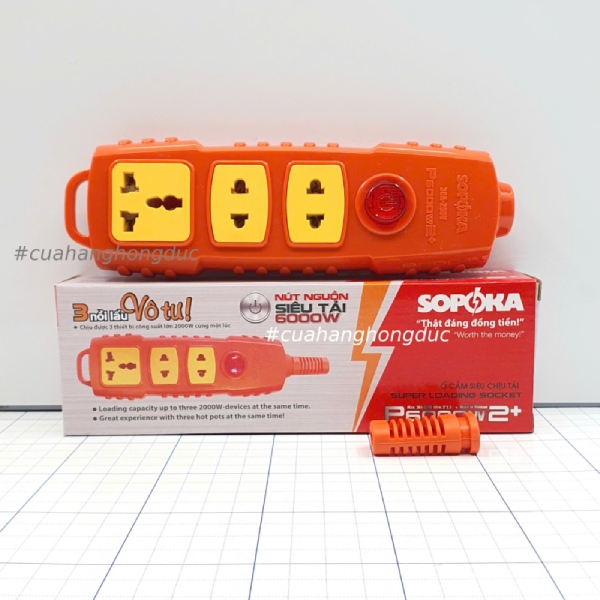 Mua Ổ Cắm Điện 3 Lỗ Không Dây 6000W Có Nút Nguồn P6000W2+ SOPOKA tại: