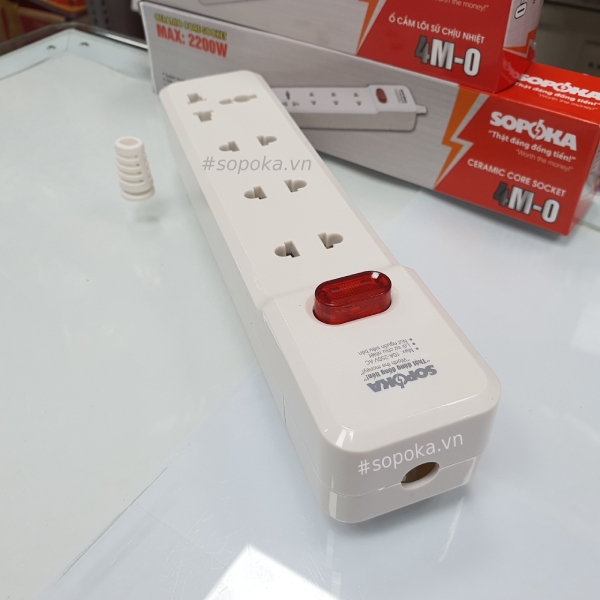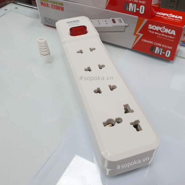 Ổ cắm điện 4 lỗ 2200W lõi sứ Không Dây có công tắc 4M-0 SOPOKA