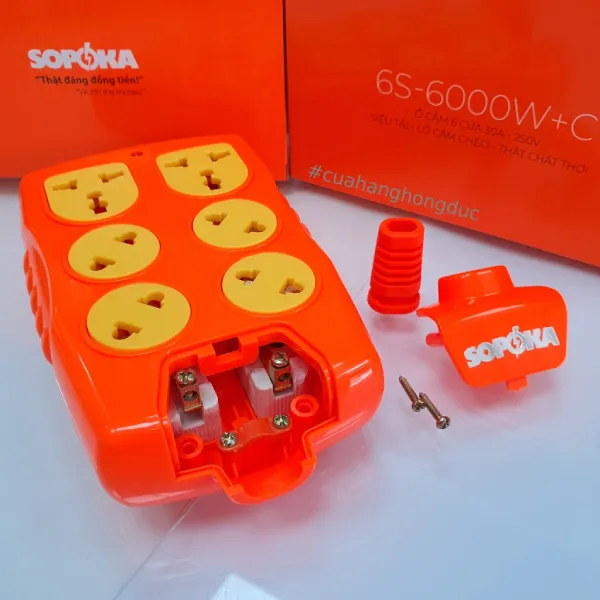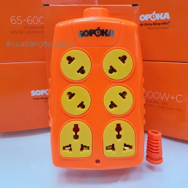 Từ khóa: Ổ cắm điện 6 lỗ,Ổ cắm điện 6 lỗ không dây,Ổ cắm điện 6 lỗ 6000W,Ổ cắm điện công trường,Ổ cắm điện siêu chịu tải,Ổ cắm điện SOPOKA,6S-6000W+C SOPOKA.