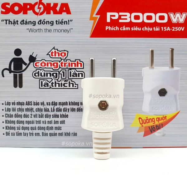 Từ khóa: Phích cắm điện SOPOKA,Phích cắm điện chịu tải,Phích cắm điện dương chịu tải,Phích cắm điện dương chịu tải,P3000W SOPOKA. #sopoka ##sopokavn.
